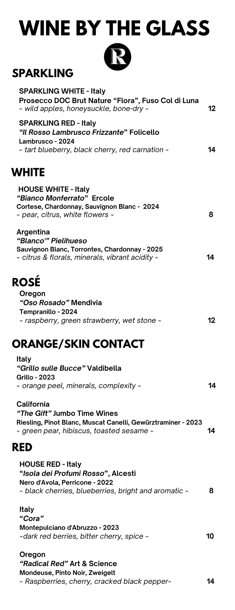 Wine Menu